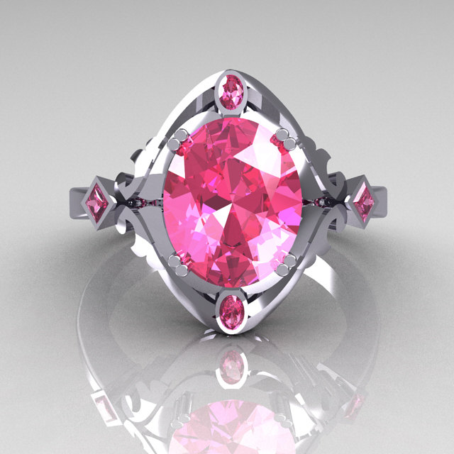 Beautiful and rich, the new Modern Classic 950 Platinum 1.75 Carat Oval Rose Topaz Wedding Ring R73-PLATRT evokes style and elegance, is sure to please the most discriminating feminine taste. Over 4.0 grams of 950 platinum, 2 x princess cut 0.10 carat, 2 x oval 0.10 carat and 1 x oval 1.75 carat lab rose topaz stones bring unmatched value with over 70% in savings towards catalog retail price. Art Masters guarantee to bring you direct savings with low price, no sales tax and free standard US Nationwide delivery when you buy this product from our jewelry section.