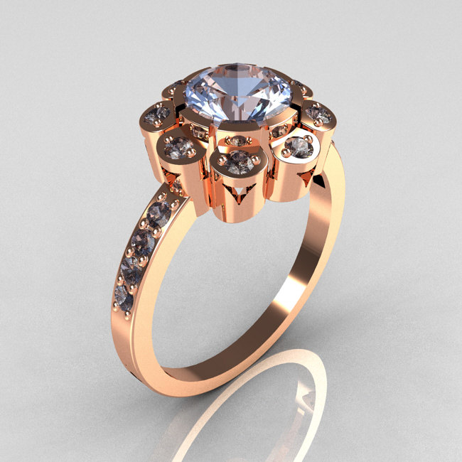 * Modern Edwardian 18K Rose Gold 1.0 CT Round Blue Topaz Engagement Ring R80-18KRGBT