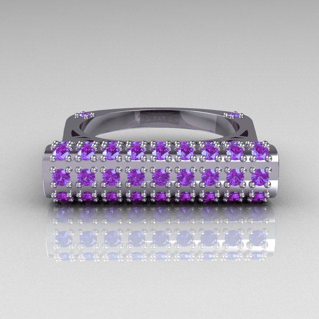 Absolutely luxurious, this fine Modern Persian 10K White Gold 0.73 CTW Light Amethist Designer Ring R103-10KWGLA is sure to delight the most discriminating feminine taste.